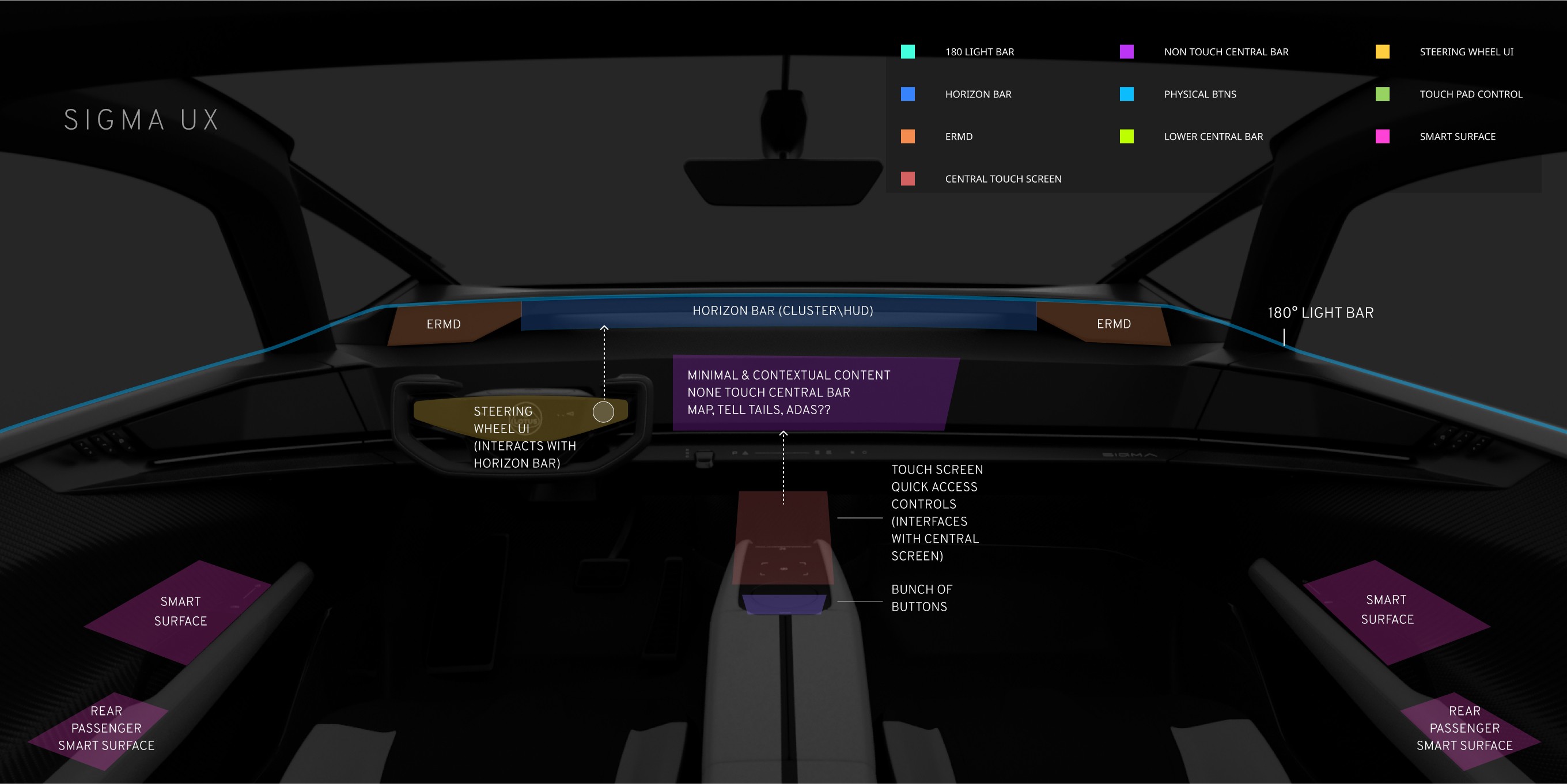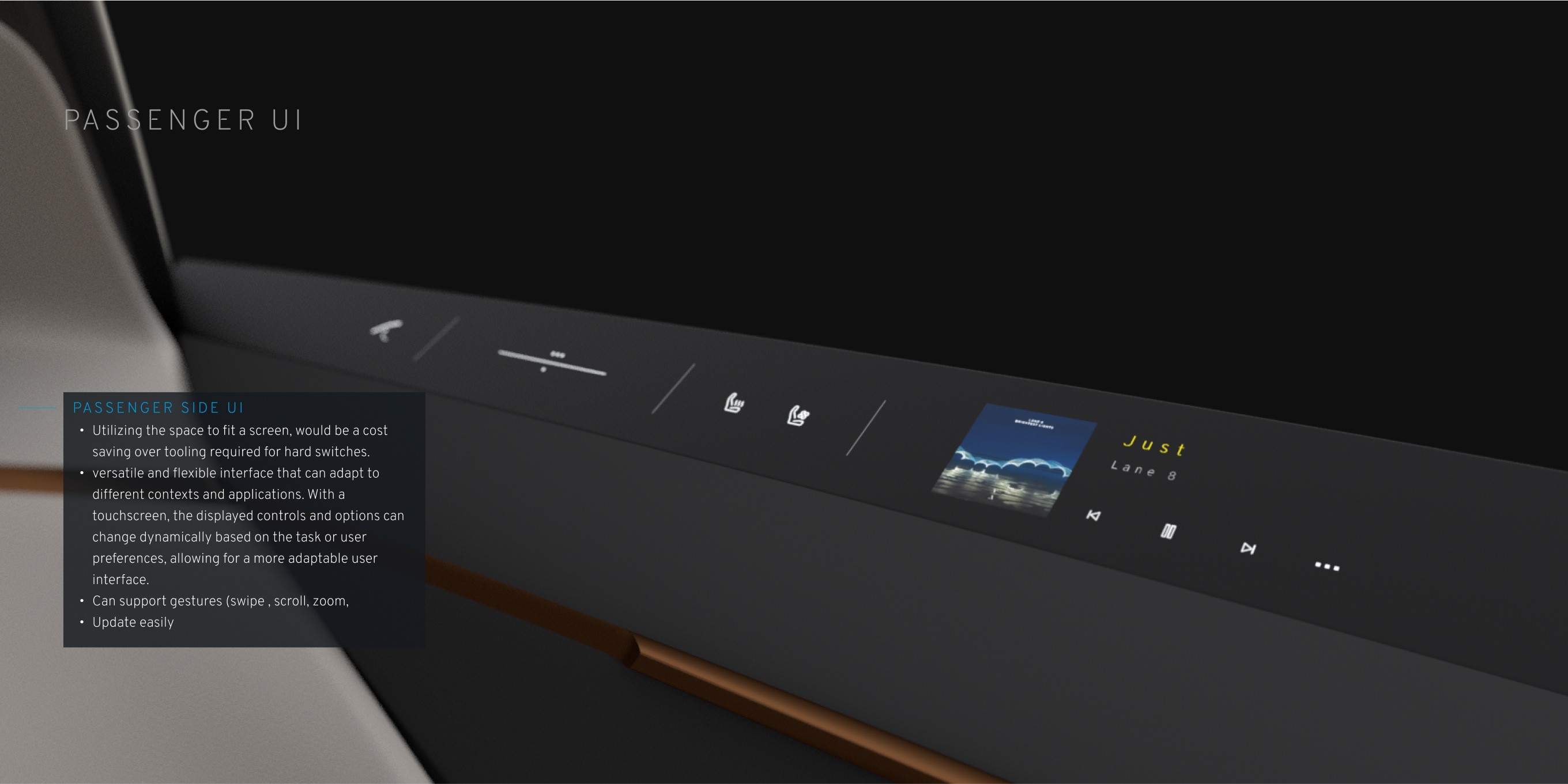 • Proposing a design direction that sits apart from any other HMI experience and feels like a high-end/luxury experience.