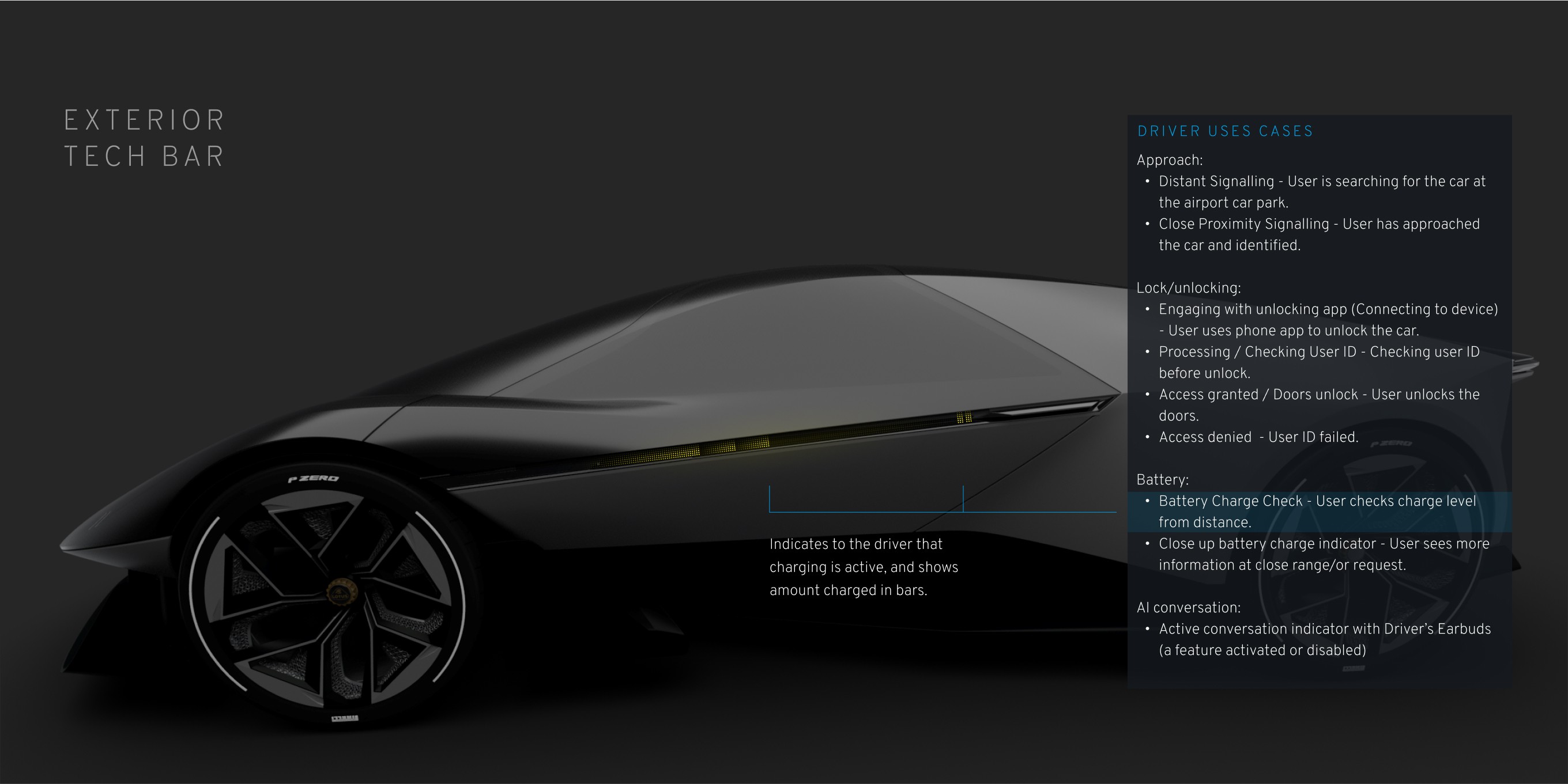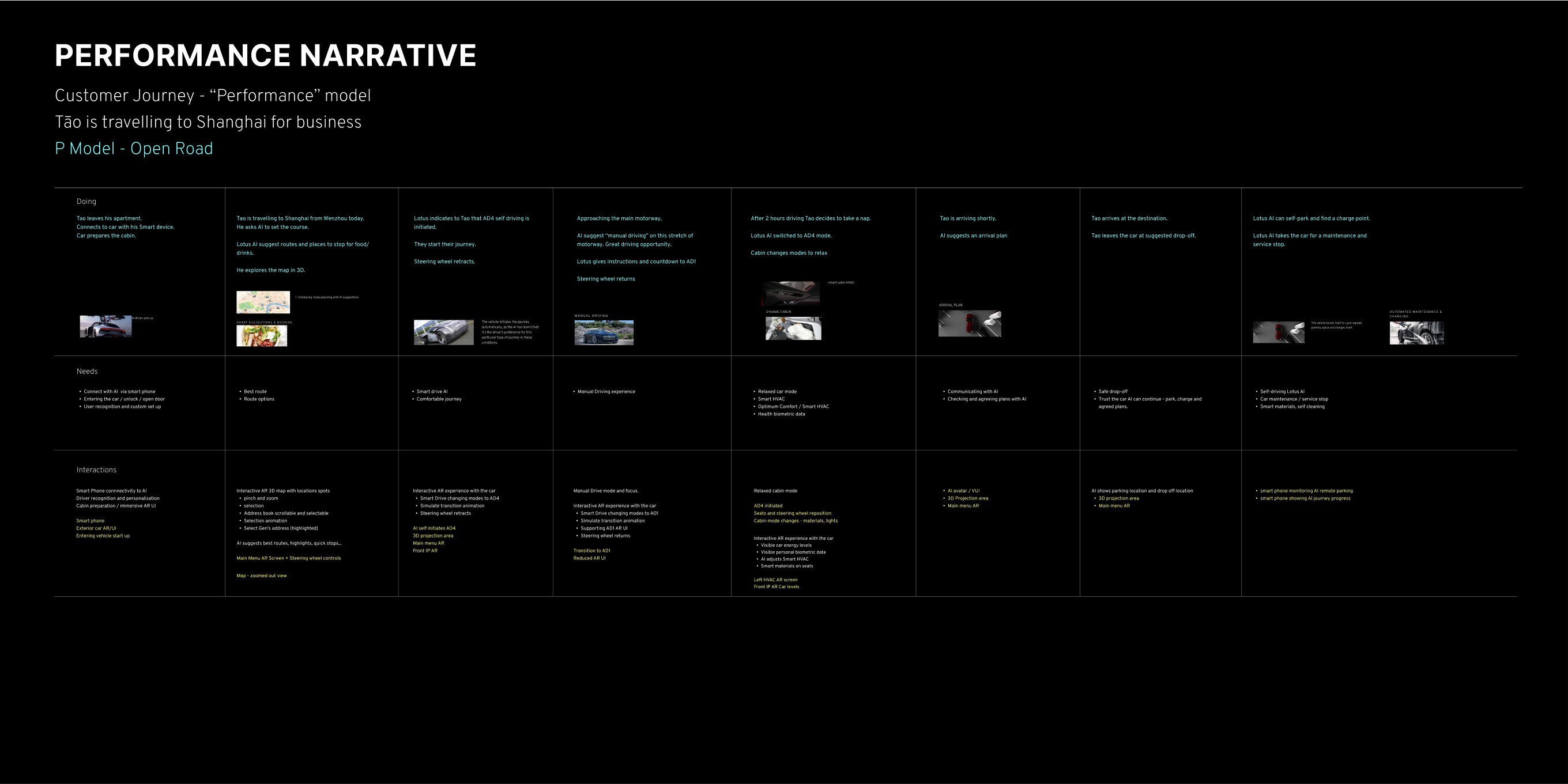The Lotus LTCC design team was assembled to initially work on the roll out of the latest Lotus Eletre in-car HMI system. Following on from there we began to conceptualise and design a future vision for a range of EV Lotus vehicles from family SUV to High Performance cars. These highly conceptual projects considered fully autonomous driving, single driver experiences and many new tech advances such as haptic, smart surfaces and holographic projection.